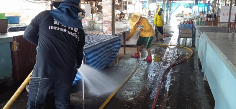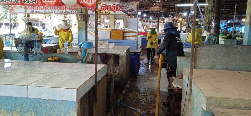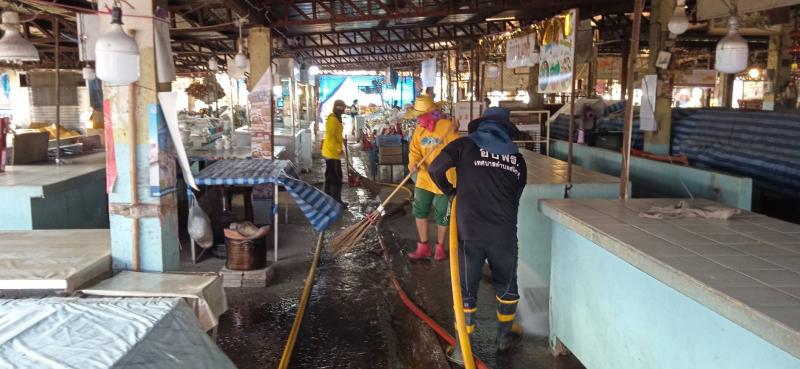 เจ้าหน้าที่เทศบาลตำบลศรีธาตุลงพื้นที่ล้างตลาดสดตามหลักสุขาภิบาล