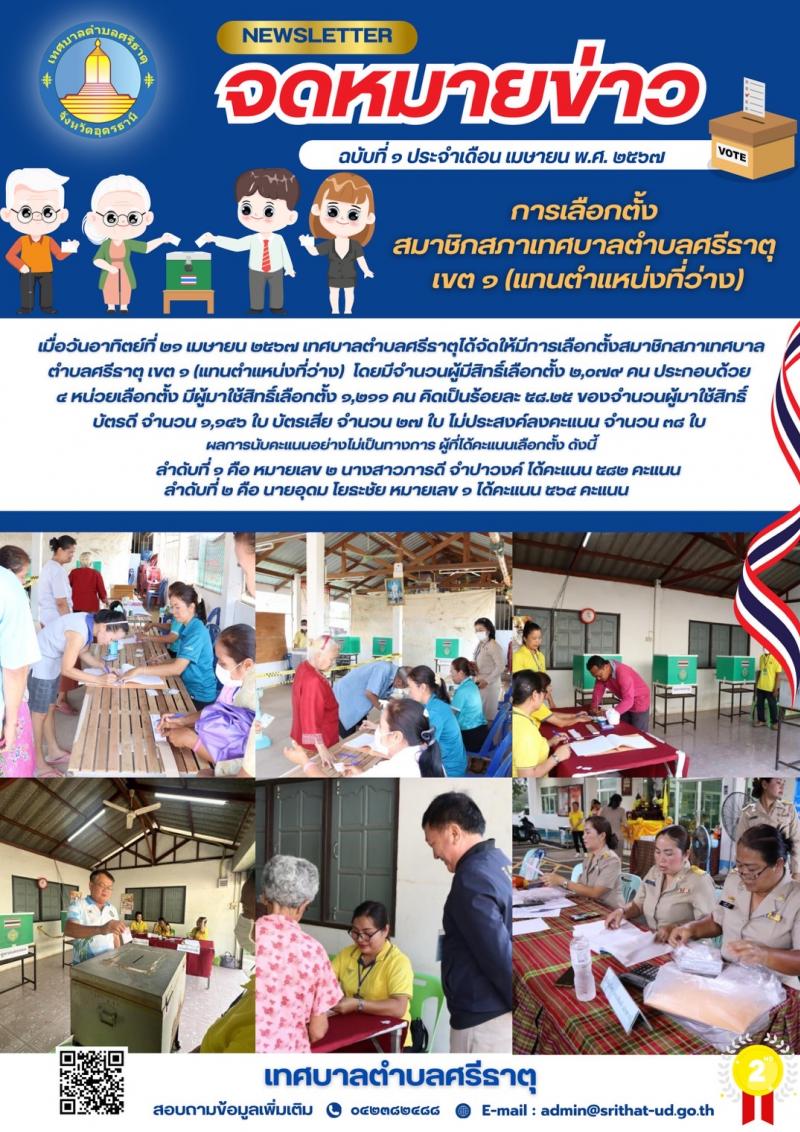 จดหมายข่าวเทศบาลตำบลศรีธาตุประจำเดือนเมษายน พ.ศ. 2567 ฉบับ 1