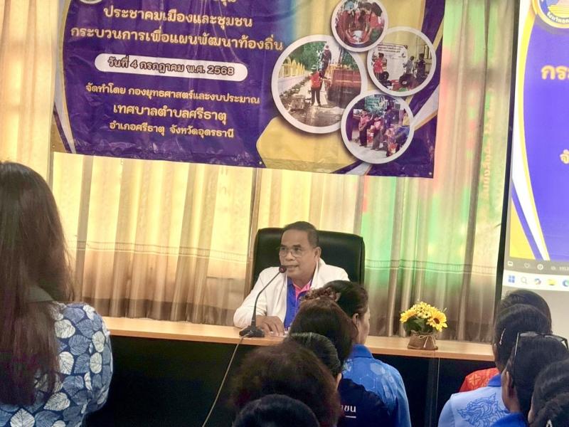 รายละเอียด : เมื่อวันที่ 4 กรกฎาคม 2568 เวลา 09.00 น. เทศบาลตำบลศรีธาตุ โดย กองยุทธศาสตร์และงบประมาณ ได้ดำเนินการจัดโครงการประชุมประชาคมเมืองและชุมชน เพื่อปรับปรุง เพิ่มเติมแผนพัฒนาท้องถิ่น ประจำปีพ.ศ. 2568 โดยมี นายสงกรานต์ คุยบุตร นายกเทศมนตรีตำบลศรีธาตุ ให้เกียรติเป็นประธานในพิธีเปิดโครงการและร่วมกิจกรรม การจัดประชุมในครั้งนี้ จัดขึ้นเพื่อเปิดโอกาสให้ประชาชนในเขตเทศบาลตำบลศรีธาตุ ตลอดจน ผู้นำชุมชน หัวหน้าส่วนราชการ สมาชิกสภาเทศบาล ได้มีส่วนร่วมในการนำเสนอปัญหา ความต้องการ และข้อเสนอแนะ ที่สะท้อนสภาพปัญหาและความจำเป็นในแต่ละพื้นที่ของทั้ง 9 ชุมชน ในเขตเทศบาลตำบลศรีธาตุ รวบรวมข้อมูลจากประชาชนและภาคีเครือข่ายต่างๆภายในพื้นที่เพื่อนำไปใช้เป็นข้อมูลประกอบการเพิ่มเติมและปรับปรุงแผนพัฒนาท้องถิ่น ให้ครอบคลุมทุกมิติของการพัฒนา ตอบสนองต่อความต้องการของประชาชนอย่างแท้จริง