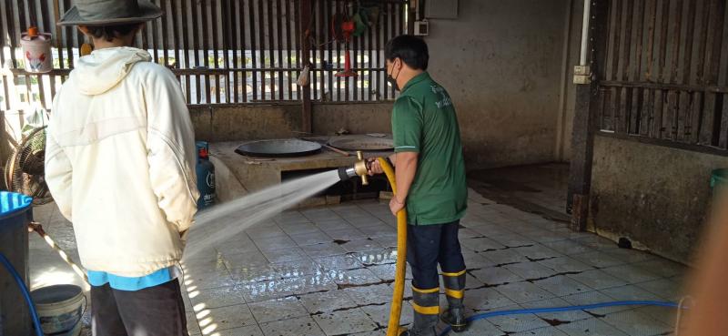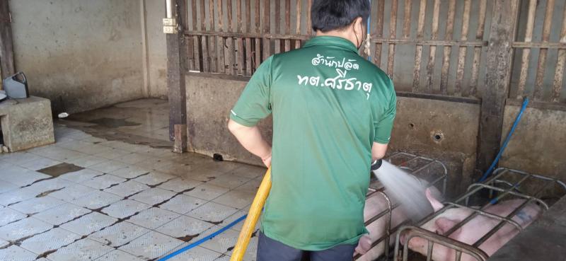 เจ้าหน้าที่เทศบาลตำบลศรีธาตุ ลงพื้นที่ชะล้างทำความสะอาดโรงฆ่าสัตว์