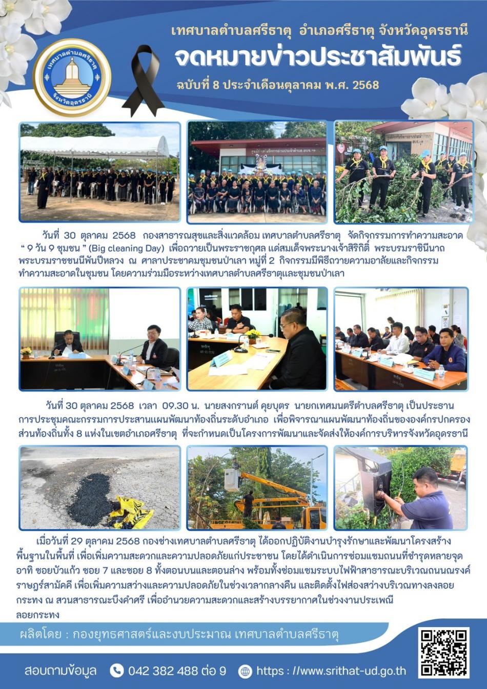 จดหมายข่าวเทศบาลตำบลศรีธาตุ ฉบับ 8 ประจำเดือน ตุลาคม พ.ศ. 2568 [30 ตุลาคม 2568]