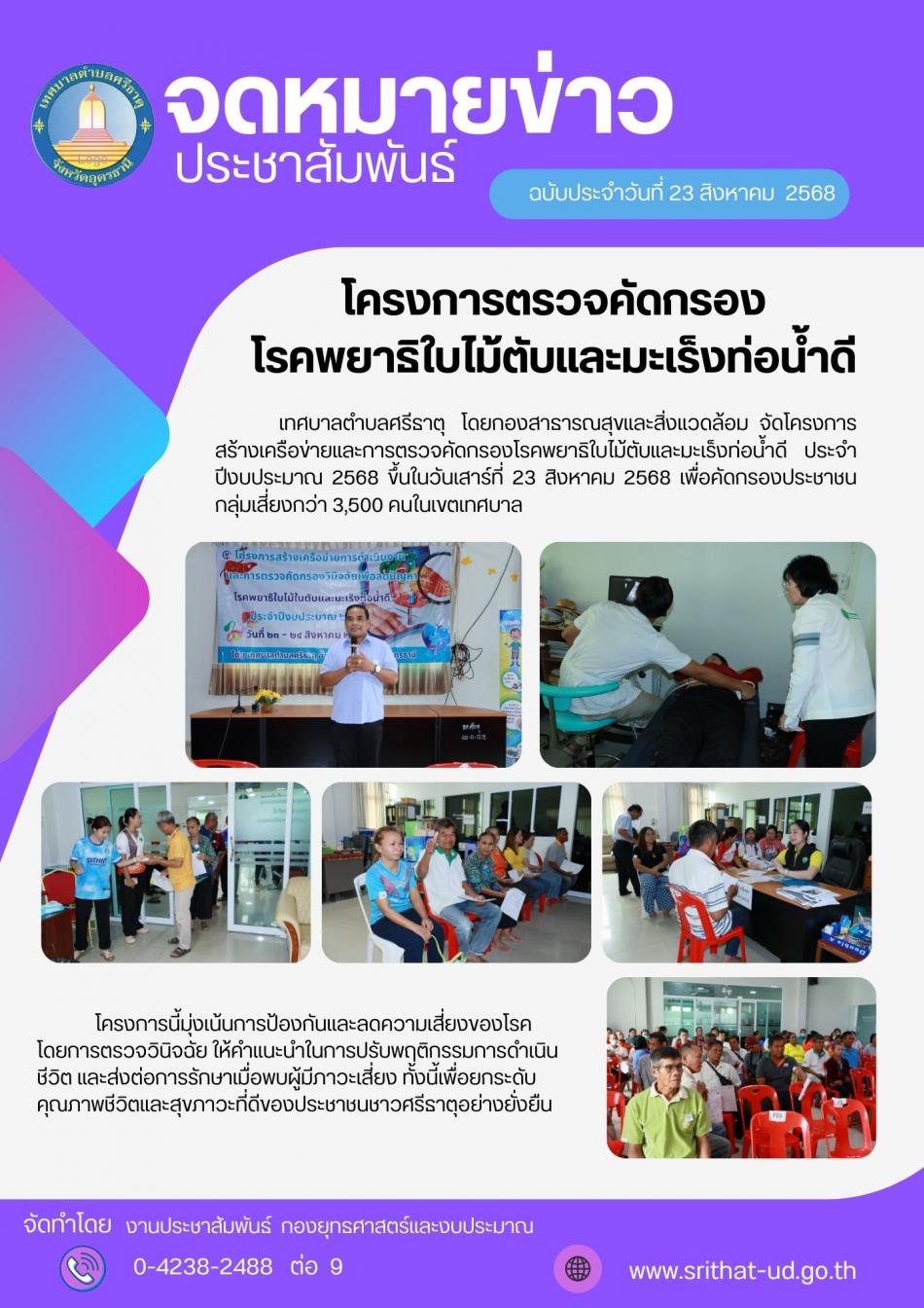 จดหมายข่าวเทศบาลตำบลศรีธาตุประจำวันที่ 23 สิงหาคม 2568 [23 สิงหาคม 2568]