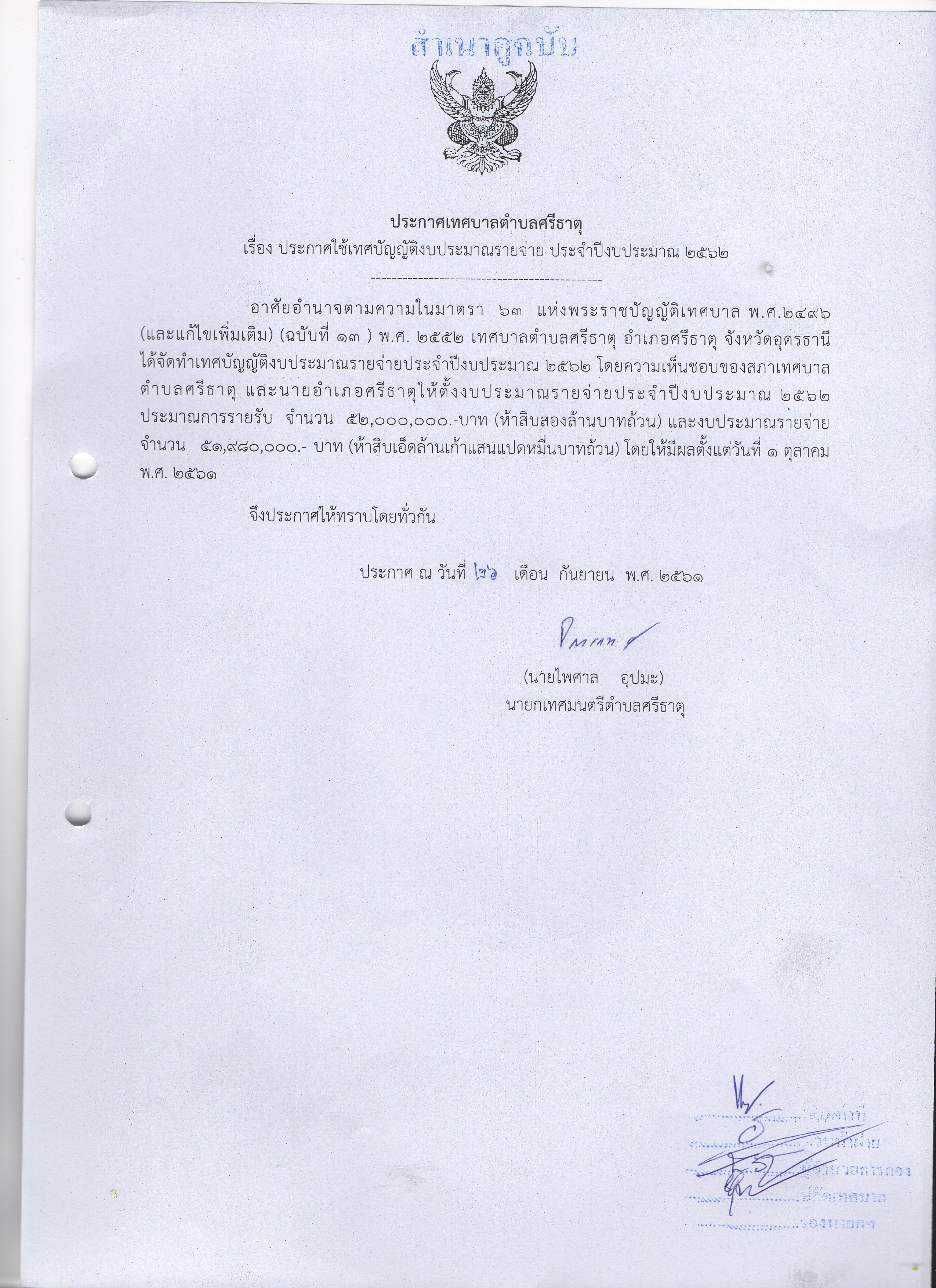 ประกาศใช้เทศบัญญัติงบประมาณรายจ่ายประจำปี พ.ศ.2562