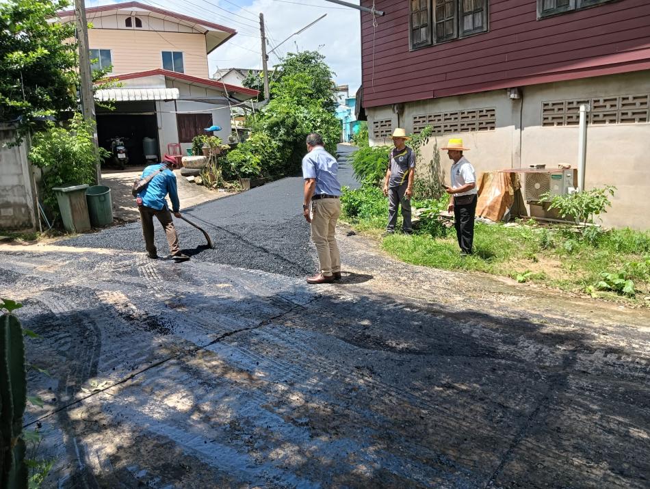 ลงพื้นติดตามความคืบหน้าการก่อสร้างถนนแอสฟัลติกคอนกรีตบริเวณซอยวะโรและซอยเทศบาล 2