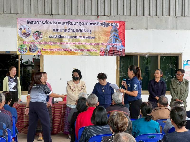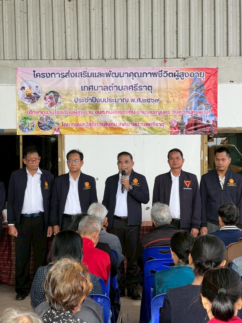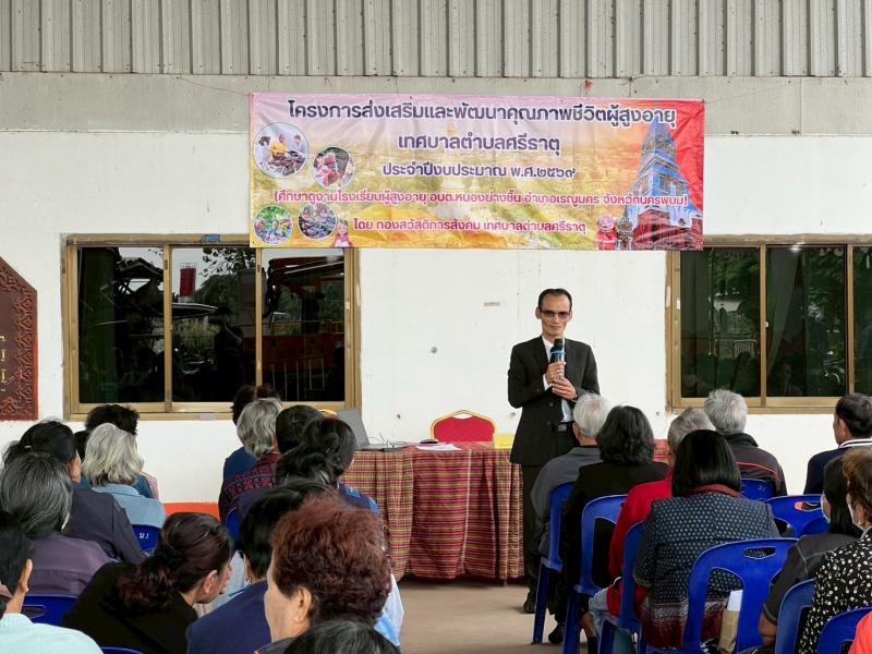รายละเอียด : วันที่ 20 พฤศจิกายน 2568 นายสงกรานต์ คุยบุตร นายกเทศมนตรีตำบลศรีธาตุ ได้เป็นประธานเปิดการอบรมโครงการส่งเสริมและพัฒนาคุณภาพผู้สูงอายุ ประจำปีงบประมาณ พ.ศ. 2568 ซึ่งจัดโดยกองสวัสดิการสังคม เทศบาลตำบลศรีธาตุ ณ อาคารป้องกันและบรรเทาสาธารณภัย เทศบาลตำบลศรีธาตุ ภายในงานมีกิจกรรมอบรมให้ความรู้เกี่ยวกับการปรับเปลี่ยนพฤติกรรมเพื่อการดูแลสุขภาพอนามัยของผู้สูงอายุ ตลอดจนกิจกรรมสร้างเสริมสุขภาพจิต เพื่อลดความเสี่ยงต่อการเกิดภาวะซึมเศร้าในผู้สูงวัย สำหรับกิจกรรมในวันที่ 21 พฤศจิกายน 2568 คณะผู้เข้าร่วมอบรมได้เดินทางไปศึกษาดูงานเกี่ยวกับการจัดกิจกรรมโรงเรียนผู้สูงอายุ ณ องค์การบริหารส่วนตำบลหนองย่างชิ้น อำเภอเรณูนคร จังหวัดนครพนม เพื่อแลกเปลี่ยนประสบการณ์และนำแนวทางที่ได้มาพัฒนาการดำเนินงานในพื้นที่ต่อไป.