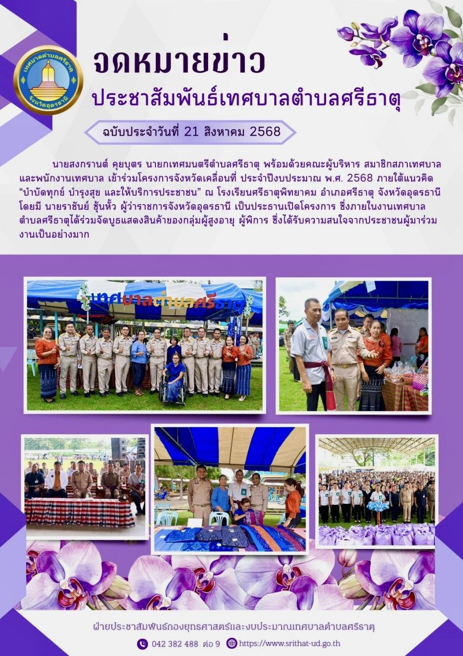 จดหมายข่าวเทศบาลตำบลศรีธาตุ ฉบับประจำวันที่ 21 สิงหาคม พ.ศ. 2568 [21 สิงหาคม 2568]